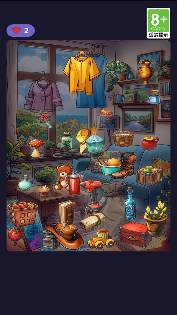 解谜我最牛是一款超考验眼力的解谜佳作!化身观察大师,穿梭于阁楼、花园、异域集市等精美场景,按提示找出画面里指定的隐藏物品。目标或融于背景、或被遮挡、或迷你隐身,需放大细节、专注搜寻。海量主题关卡难度递增,既能用碎片时间放松,又能锻炼专注力,每一次成功找齐,都能收获满满的成就感!