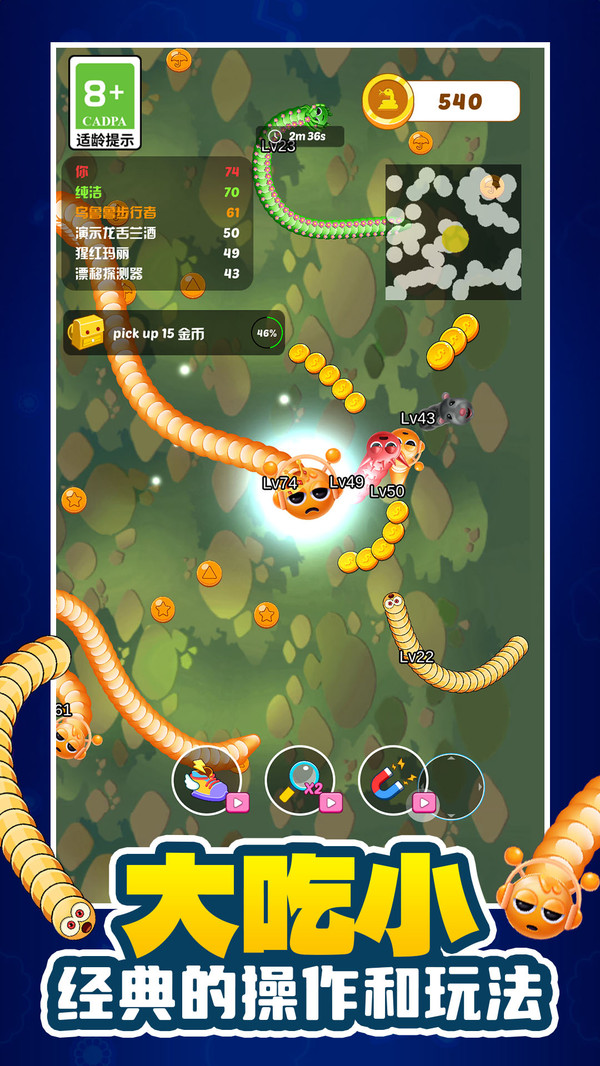 4.翻盘机会多多:体型小可不是什么缺点,小蛇也能通过操作实现逆转,过程既刺激又能带来满满的成就感,每一局都蕴藏着胜出的无限可能。