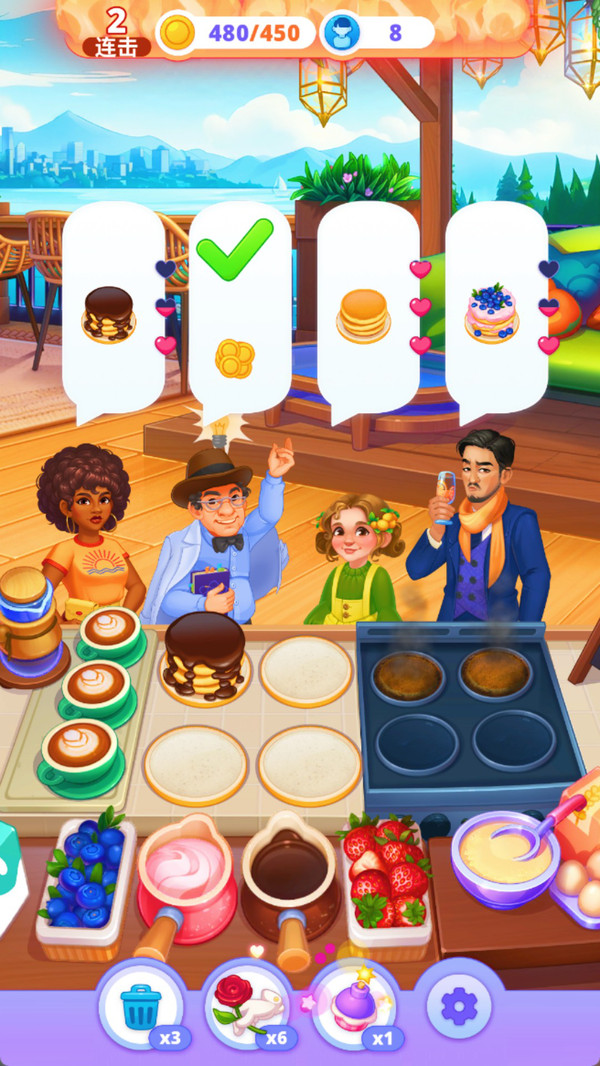 3、支持厨房设备逐步升级系统,从基础炉灶到智能烤箱,通过积累金币强化烹饪效率,打造现代化高效厨房环境。