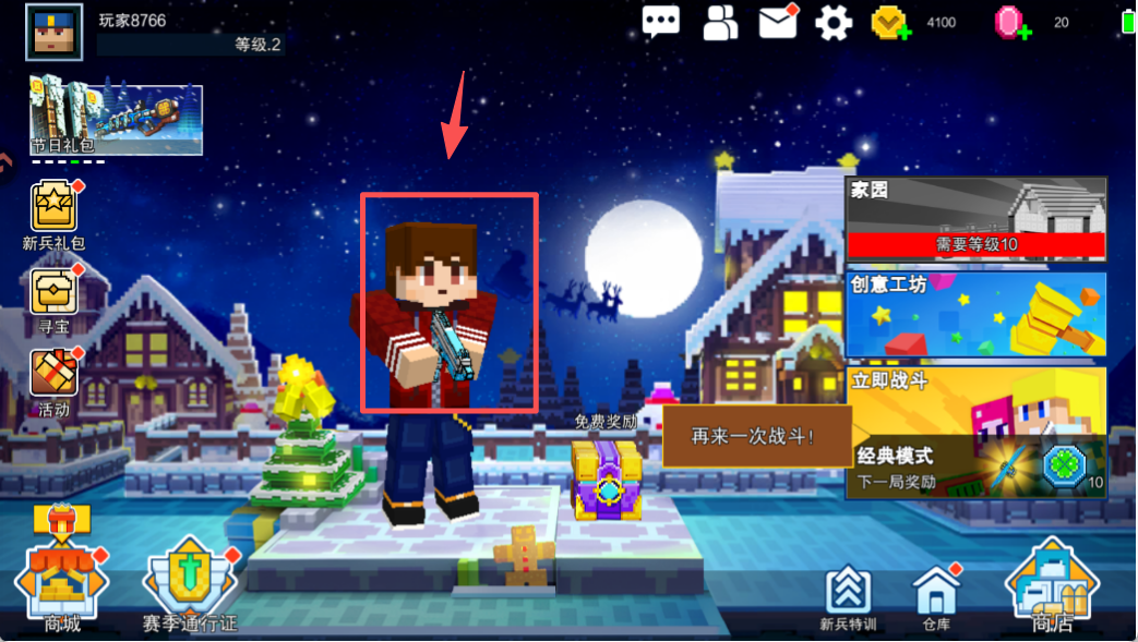3、中间是角色和场景,右侧有家园、创意工坊等主要功能区呢。