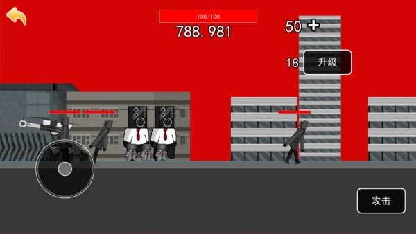 3、畸变不断的袭击而来,你可以点击右方的升级,强化自己的实力;