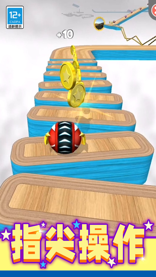 游戏操作方式简洁,只需通过基础的滑动或点击动作,就能轻松控制球球转向、躲避障碍,无需复杂的操作技巧,新手也能快速掌握跑酷要领。