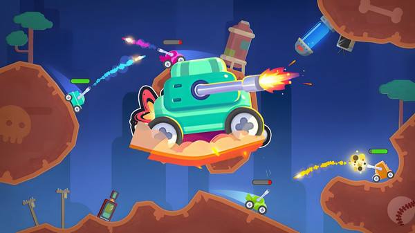 1、坦克的移动跳跃及被击中后的受力反馈都基于真实的物理模拟,操作手感扎实且充满变数,可玩性高。
