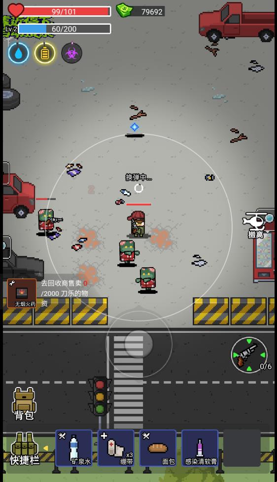 4、游戏中玩家周围的圆圈是攻击范围,当有敌人进入会自动攻击,消灭敌人可以获得经验,提升等级后可以解锁新的地图。