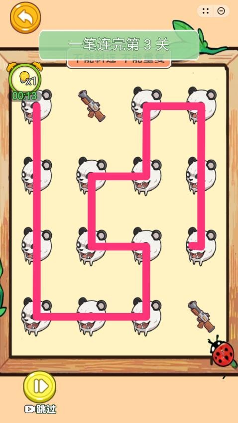 1、在这个关卡中,你可见到被小猪包围的熊猫,只需将所有小猪连接起来即可完成挑战。