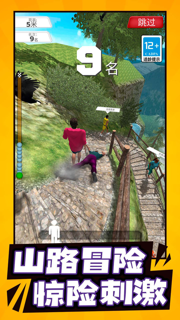 -动态游戏玩法:穿越设计精美的各种关卡,充满意想不到的危险。从湿滑的楼梯到倒塌的平台,每场比赛都会出现新的障碍,考验你的反应和策略。