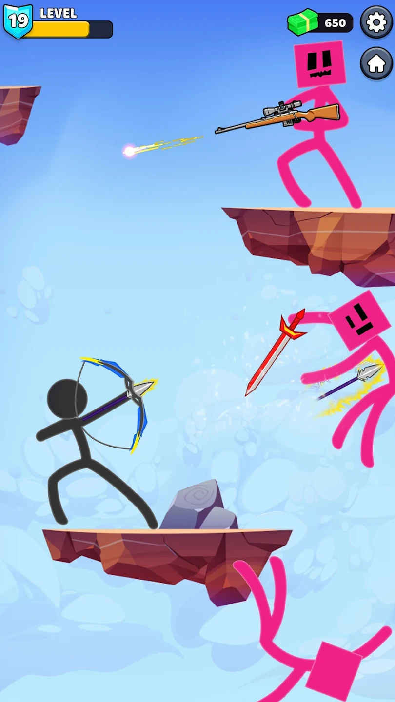 5、在团队战斗中,最多可以出现四个火柴人角色,同时我们还可以对火柴人不断的升级,超过600个等级,200种不同的敌人和层出不穷的大BOSS,在等待着大家的挑战,可玩性极高。