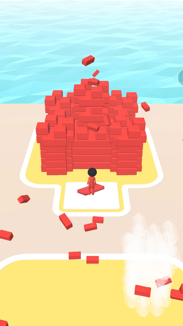 2、当你的角色触碰到地上的砖块时,它们会自动被收集并堆叠在你的身后。