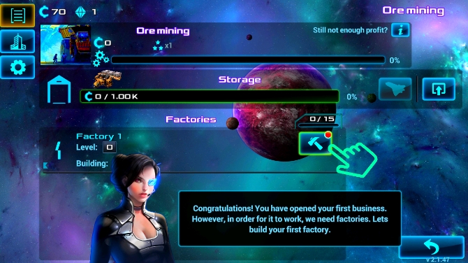 3、在不同的方向开展业务,采矿,食品生产,奢侈品供应等,升级您的业务并创建您的太空业务帝国。