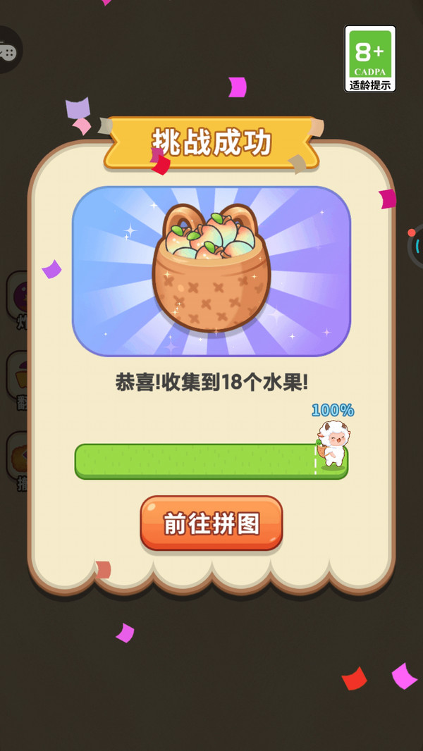 1、这是游戏的主要玩法之一,玩家需要移动屏幕上的绵羊,这样才能吃到相应的水果,这种玩法将消除和策略元素融合在一起。