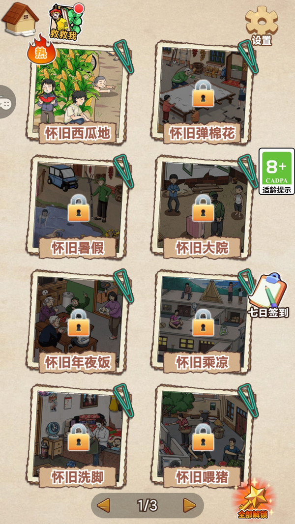 1、多维互动设计:部分关卡需放大、旋转画面或点击触发动画,比如摇晃手机让树上的椰子掉落,才能找到隐藏目标。
