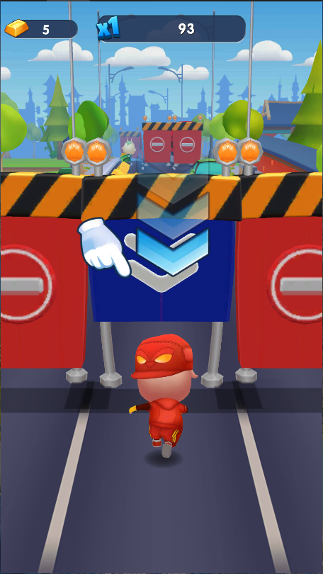 遇到障碍根据手势向上滑动躲避。