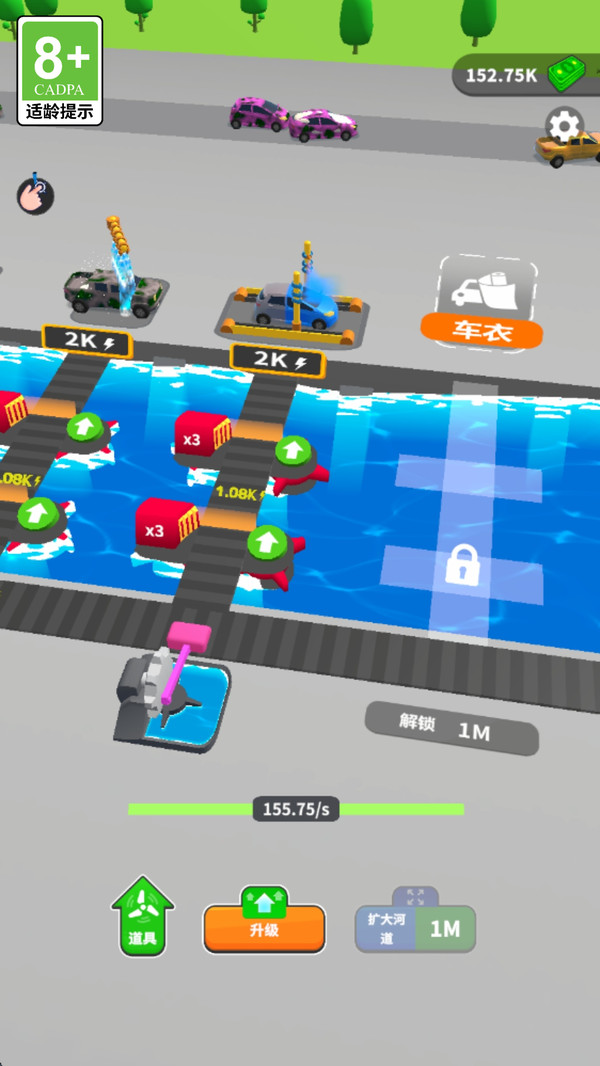 2、购买道具,利用充电、洗车以及喷漆获取的资金购买道具,加快生产出更多的电力。