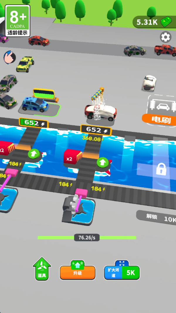 超级发电达人是款创意十足的模拟经营手游,创新融合水力发电与洗车服务经营。玩家化身洗车店老板,依托天然水流搭建发电系统,为洗车业务供能,富余电力还可向外输送,游戏真实还原绿色能源从获取、转化到分配的全流程。可升级水轮发电机至涡轮机组提升发电效率,同步改良洗车设备优化服务,科技树支持定制升级策略。特色上下游电力管理系统,从洗车工坊逐步发展为区域性能源服务商。