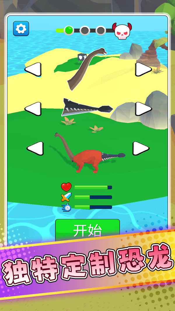 1、以恐龙为核心对抗目标,涵盖多种经典恐龙类型,从小型迅猛龙到大型霸王龙,满足玩家对恐龙题材的探索欲。