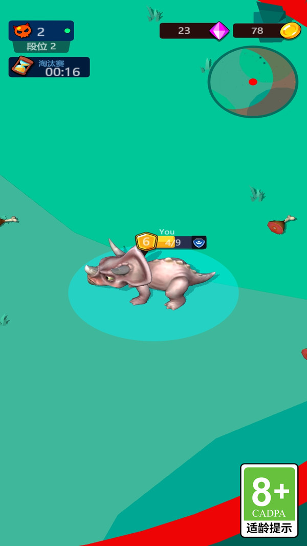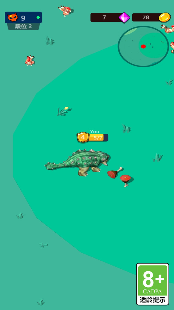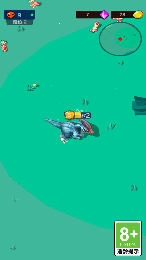 1、探索非常自由,在上找到各种可以快速升级的资源,控制恐龙四处走动。