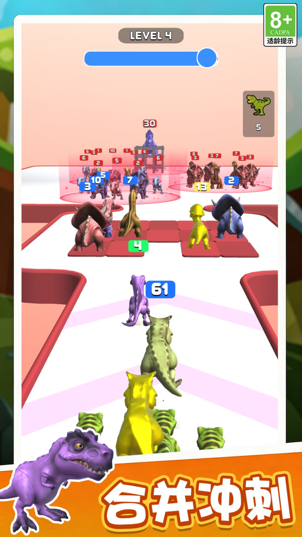 恐龙冲刺是一款趣味恐龙主题休闲手游,拥有多款萌趣恐龙形象,打造刺激的侏罗纪冒险体验。玩家任选恐龙操控,在多变地图中探索对战,收集金币钻石与各类道具提升恐龙属性战力,操作简单易上手。恐龙冲刺游戏打造震撼的侏罗纪场景,还需躲避霸王龙等掠食者追击。核心解锁恐龙融合系统,可将不同恐龙合成为强力混种巨兽,一路冲刺进化,最终称霸恐龙世界。