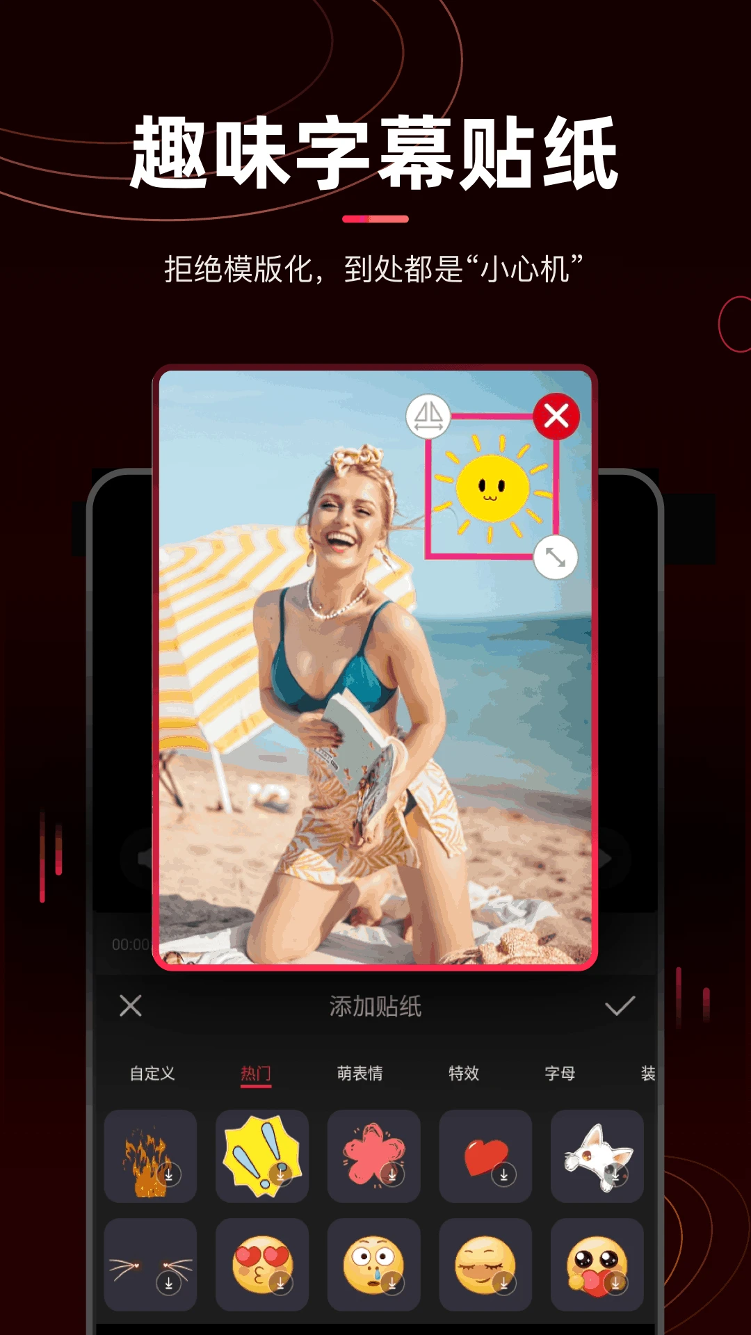-时尚贴纸:无论是萌表情,特效还是字母,多种时尚贴纸供君选择~