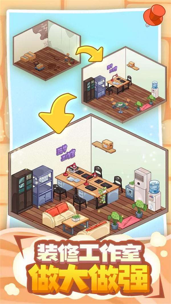 筑梦工作室是一款充满创意与挑战的模拟经营类游戏。在这款游戏中,玩家将化身为一家装修公司的老板,从零开始打造属于自己的装修帝国。游戏的核心玩法围绕着为顾客提供优质的装修服务展开,你需要根据每位顾客的独特需求,精心设计出最符合他们心意的装修方案。无论是现代简约、复古怀旧还是奢华欧式风格,你都可以自由搭配各种家具和装饰品,创造出独一无二的空间效果。游戏提供了海量的家具和装饰物品供你选择,每一件物品都有不同的样式和颜色,让你能够充分发挥自己的设计天赋。随着游戏的深入,你将解锁更多高级家具和装修工具,逐步提升自己的装修技能,成为行业内的顶尖设计师。