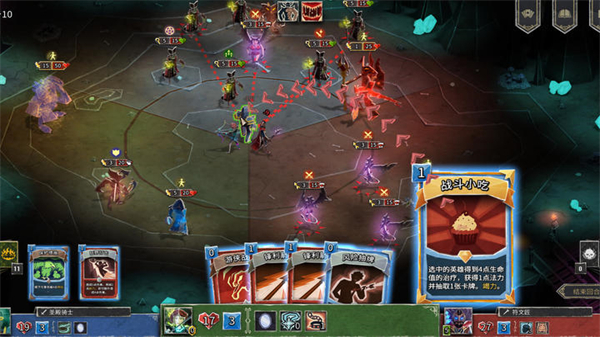 2、采用快节奏的回合制卡牌策略对战,每轮有固定法力值,可重新抽牌。玩家操控角色出牌,利用卡牌技能与怪物战斗。