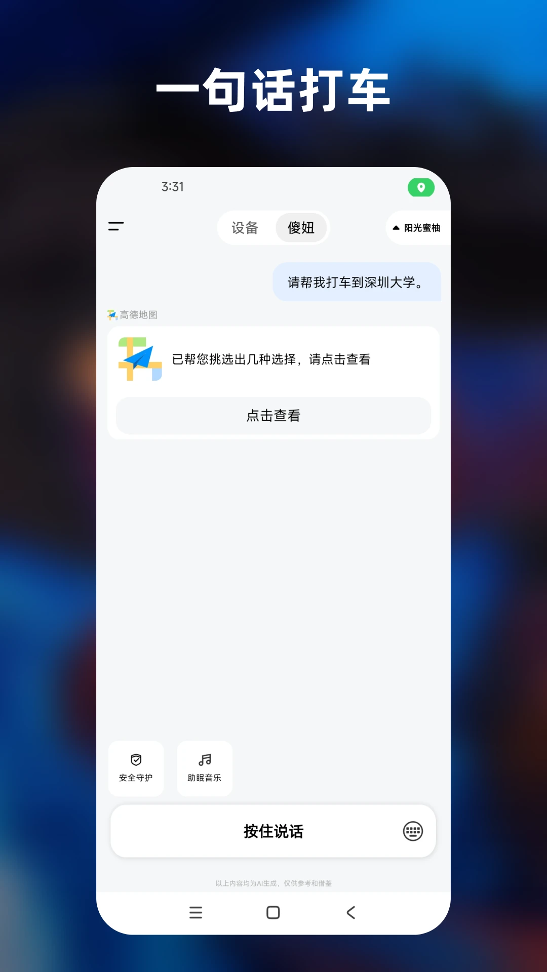 多模态AI交互:支持"傻妞"唤醒词、长按语音输入、手动打字三种交互方式,在地铁等嘈杂环境也能准确识别指令。