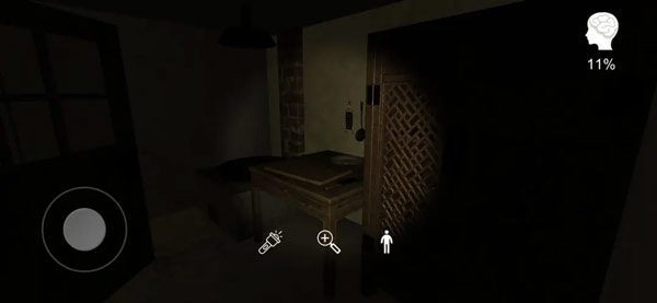 1、暗黑的画面十分的诡异,我们在其中将会以手电筒照光的形式去探索;