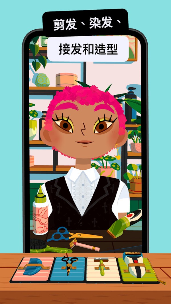 个性化店铺打造:提供多套装修风格模板,从简约现代到复古温馨均可选择,同时支持自定义墙面颜色、装饰摆件与设备摆放位置,玩家可根据喜好打造独具特色的理发店形象。随着店铺升级,还能解锁更多高端装饰品和功能区域。