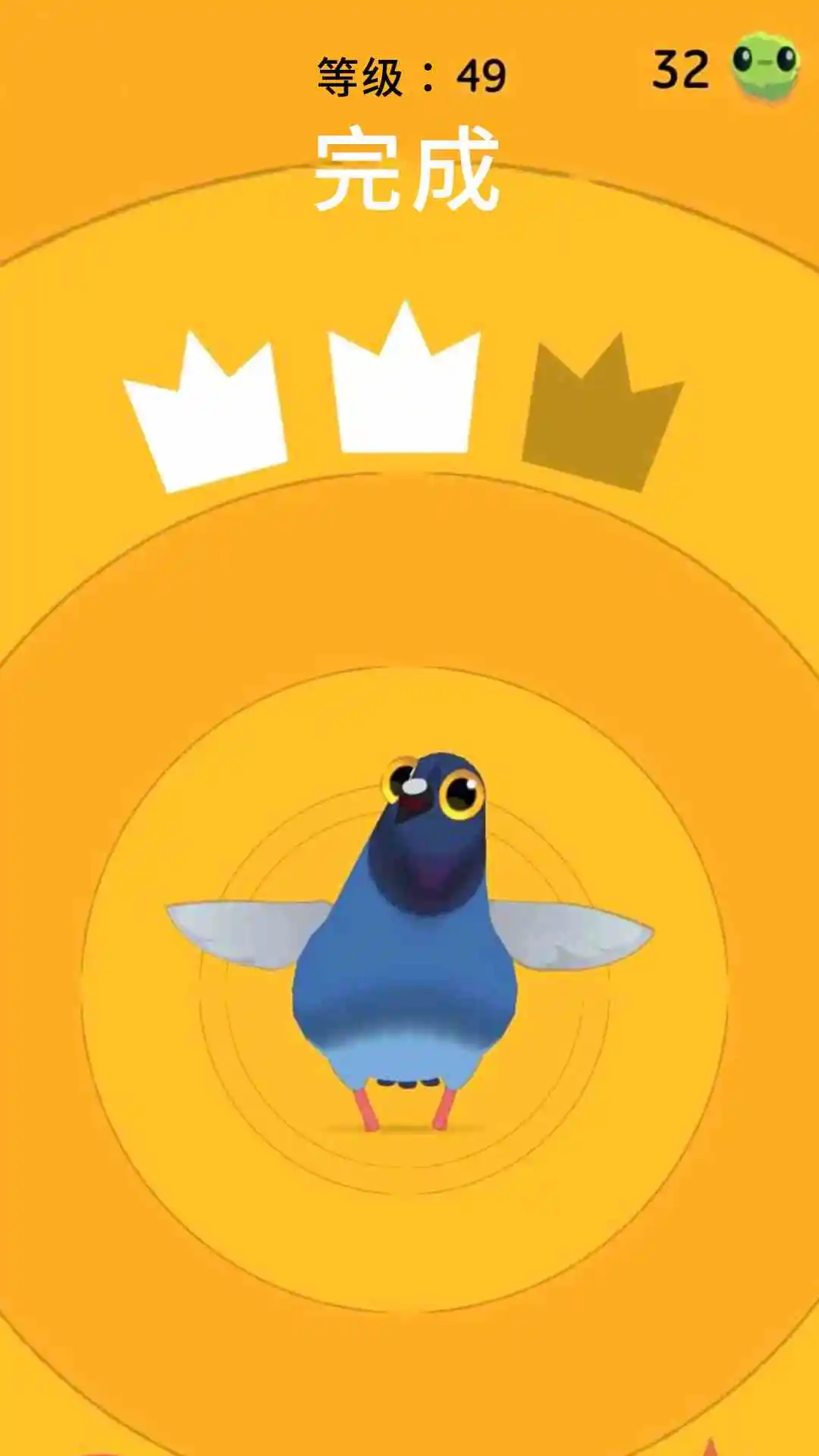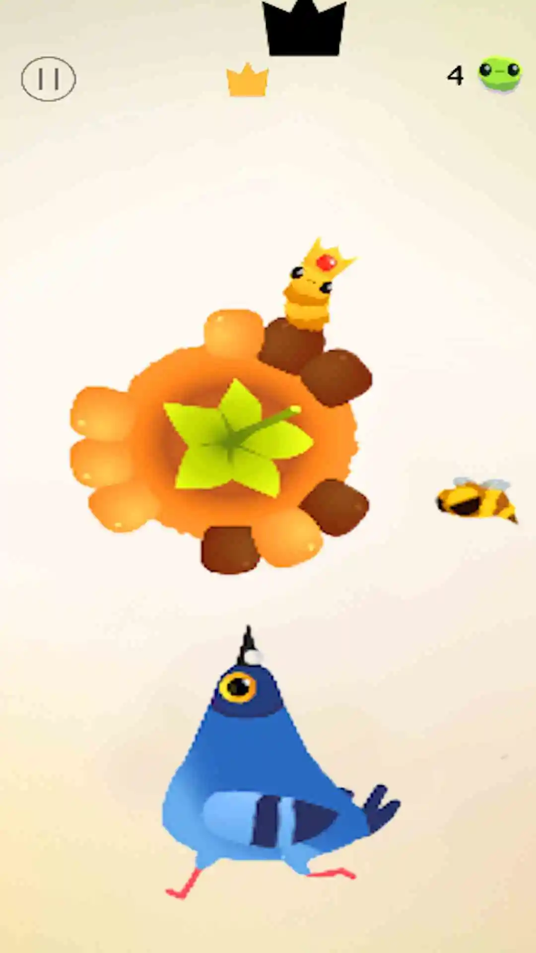 你需要在合适的时间点按屏幕,控制鸽子吃掉玉米粒还有虫子,注意躲避坏掉的玉米粒。游戏中还有一些特殊道具可以为你节约时间,合理的使用它们,完成关卡。