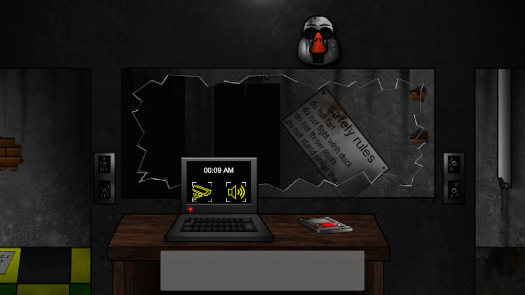 游戏开始时玩家会置身于一个昏暗的房间中,需要仔细查看桌上的物品,比如红色光盘等关键道具。操作房间内的电脑并点击喇叭图标可以获取重要线索。电脑屏幕上会显示地图1-ACena,玩家需要根据箭头指引在复杂的建筑布局中展开探索,同时要小心躲避机械鸭子等危险怪物。在探索过程中,务必遵循房间内张贴的safetyrules安全规则,利用场景中的特殊构造如破碎的墙洞进行潜行,逐步完成夜间生存任务和解谜挑战。