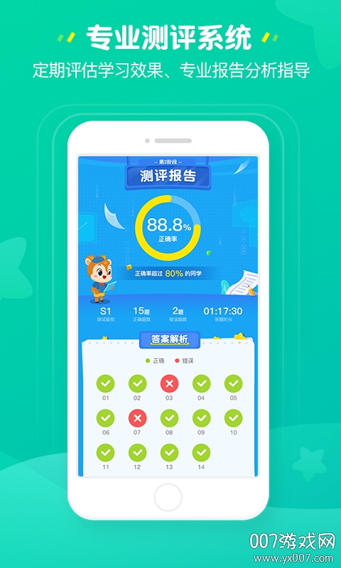 家长可以随时查看课堂回顾,了解孩子的学习表现和老师的教学质量。专业的定级测评系统能够准确定位孩子的各项能力指标,为每个孩子制定个性化的学习方案。完整的教学闭环包括课前预习、课中互动、课后练习和阶段测评,确保孩子能够扎实掌握每个知识点。趣味化的互动设计让超级飞侠成为孩子的学习伙伴,真正做到寓教于乐,帮助孩子在快乐中学习成长。