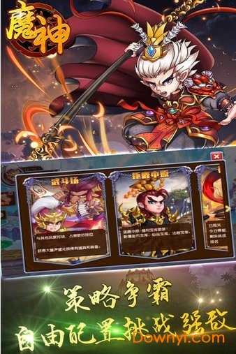 魔神手游是一款融合了卡牌策略与放置玩法的创新手游,它以精美的画面和独特的游戏体验吸引了众多玩家。游戏背景设定在中国上古神话世界,为玩家呈现了一个充满神秘色彩的奇幻大陆。在这里,你可以收集各种神话传说中的英雄人物,组建属于自己的强大阵容。游戏最大的特色是采用了挂机式休闲玩法,让你即使没有大块时间也能享受游戏乐趣,无论是上班通勤还是午休时间,都能随时随地进入游戏世界,体验策略对战的快感。