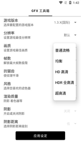 设置游戏的最佳分辨率,确保画面清晰度与设备性能的完美平衡;为您的设备智能推荐最佳画面品质,充分发挥硬件潜力;突破系统限制解锁最大帧数,带来前所未有的流畅体验;先进的抗锯齿技术有效消除画面锯齿,使游戏纹理更加平滑自然;提供多种预设画面风格,满足不同玩家的审美需求;灵活控制阴影效果,可根据实际需求开启或关闭,优化游戏性能表现。