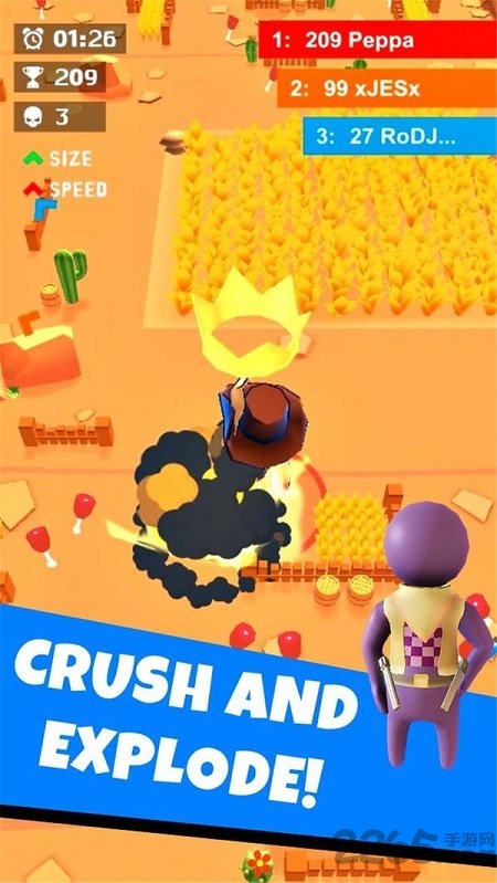 牛仔大作战手机版是一款充满西部风情的io竞技手游,玩家将化身为个性十足的牛仔,在广阔的西部世界中展开激烈对决。游戏采用独特的欧美卡通画风,完美还原了狂野西部的氛围,让玩家仿佛置身于牛仔电影之中。你可以自由选择不同风格的牛仔角色,通过收集道具、击败对手来不断成长壮大。游戏支持多人在线实时对战,无论是死亡峡谷还是茂密森林,每个场景都充满挑战与机遇。丰富的皮肤系统和道具组合让每位玩家都能打造专属的牛仔形象,体验最纯粹的竞技乐趣。