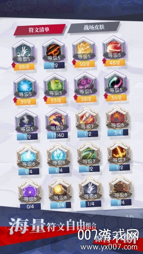 公平竞技场:所有玩家随机获得5个符文,完全公平的竞技环境,12连胜可获得稀有奖励。