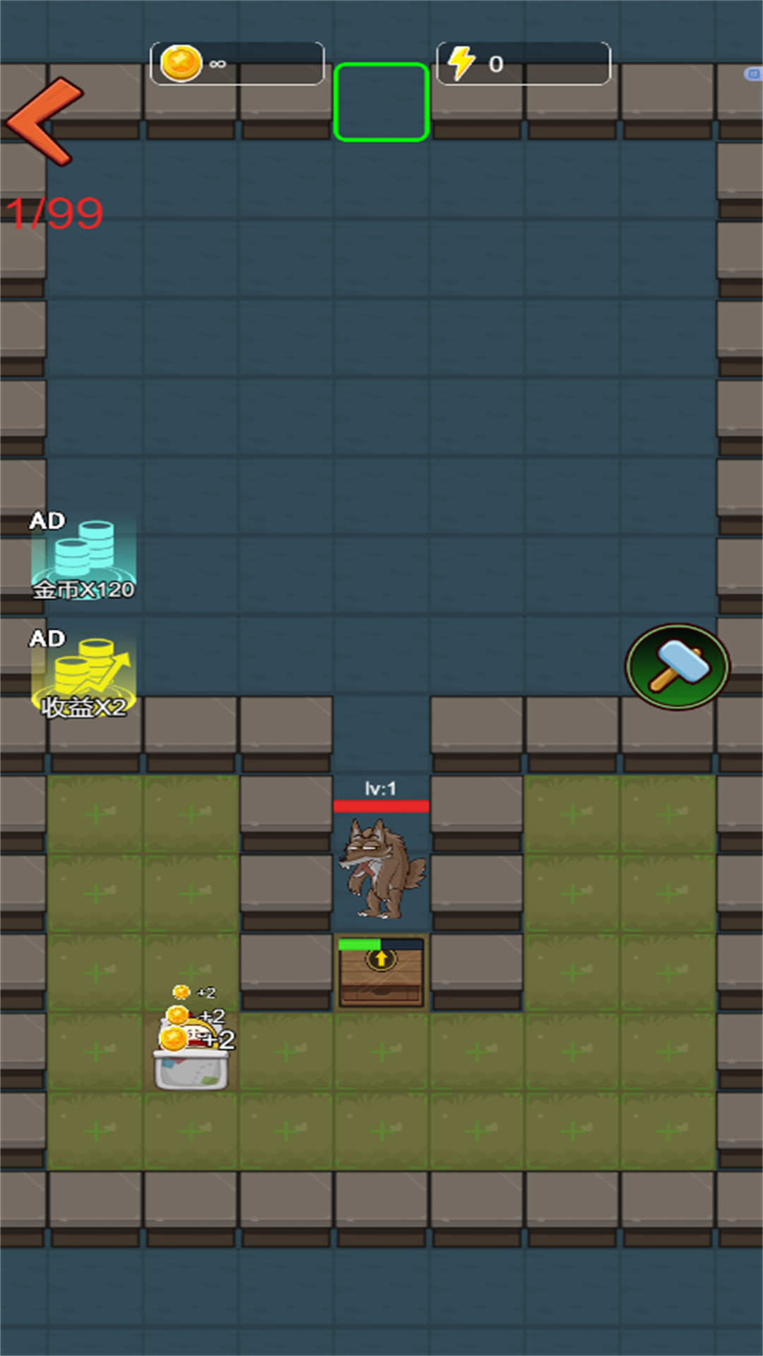 游戏提供了多种获取金币的途径,包括击杀僵尸、建造资源塔、完成特殊成就(如"连续10波无漏怪")等。最特别的是游戏的离线收益系统,即使玩家退出游戏,防御塔仍会自动战斗并积累资源,上线后可以领取"躺平"收益,大大降低了游戏的肝度。游戏包含森林、沙漠、废墟等多种风格的地图,每个地图都有独特的地形设计,比如狭窄通道适合布置群体伤害塔,开阔地带则需要更多单体攻击塔来应对,这些地形差异让每场战斗都充满新鲜感。