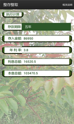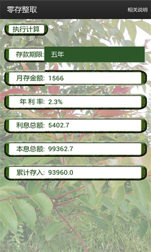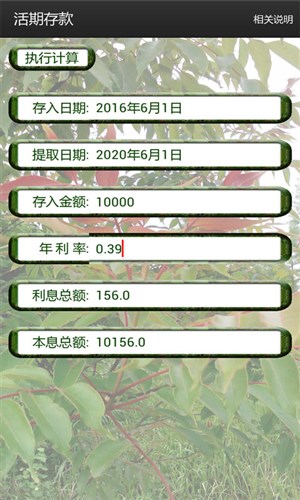 这是一款功能强大的理财工具,专为不同理财需求的用户设计,涵盖了多种存款计算方式,包括活期存款计算、整存整取计算、零存整取计算、整存零取计算、存本取息计算、定活两便计算、通知存款计算以及教育储蓄存款计算等。无论您是希望灵活管理短期资金,还是规划长期储蓄目标,这款工具都能为您提供精准的计算支持,帮助您做出更明智的财务决策。
