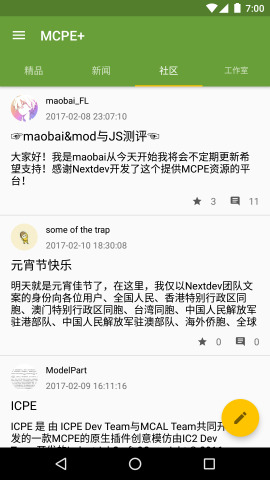 MCPE作为Nextdev团队精心打造的MinecraftPE专属平台,其功能设计处处体现着对玩家需求的深入理解。正版资源发布平台不仅严格筛选优质内容,还建立了完善的分类检索系统,让玩家能快速找到心仪的资源。交流中心采用创新的互动机制,支持图文评论、作品投票和实时私信,让创作者与玩家的沟通更加高效。创作平台则配备了可视化编辑器和丰富的素材库,即使是新手也能轻松上手,制作出属于自己的独特作品。此外,平台还定期举办创作比赛和主题活动,持续激发社区活力。