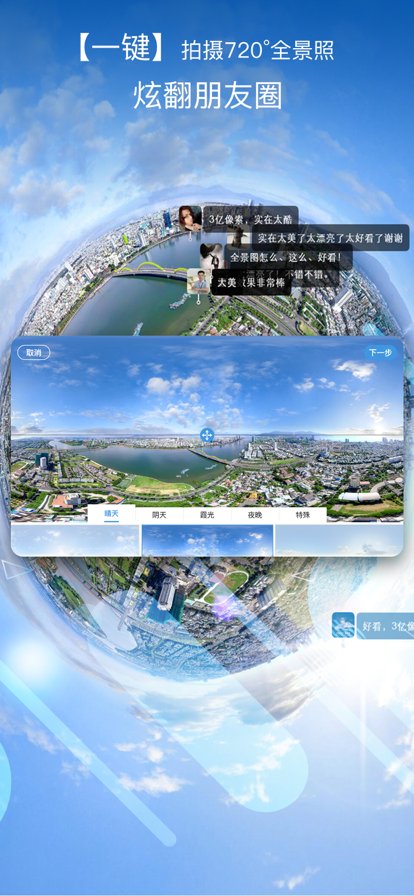 -一键拍摄"2亿"720°全景图照片。超高分辨率全景拍摄,细节表现力惊人,适合商业级应用需求。