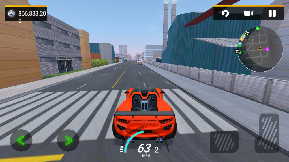 游戏采用智能化的操控系统,只需要使用屏幕上的虚拟按键就能轻松控制车辆方向、加速和刹车。特别值得一提的是,你可以随时点击右上角的视角切换按钮,在第一人称驾驶舱视角、第三人称追尾视角和俯视视角之间自由切换,找到最适合自己的驾驶体验。每种视角都能带来完全不同的游戏感受,第一人称尤其能让你身临其境地感受高速驾驶的刺激。