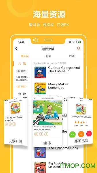 原汁原味海量资源:安妮花引进大量优质原版学习素材,包括磨耳朵儿歌、韵律诗、欧美经典诗歌和动画片。丰富的分级读物涵盖故事类绘本、非故事类绘本、桥梁书和章节书等,满足不同年龄段孩子的学习需求。