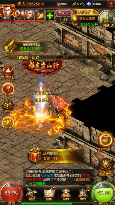 上线即送vip12特权、绑定元宝50000、铜币888万、守护小天使*1,助你快速成长。充值比例1:200超高性价比,充值10元即可解锁超V专属特权。首充任意金额即赠5888元宝豪华礼包,包含清凉时装、钻石仙王称号、60级红武及橙色套装,瞬间提升战力。每日登录更有惊喜奖励,功夫熊猫坐骑、踏雪时装、绝版称号等稀有道具等你收集。投资回报系统让你稳赚不亏,14天累计可获得15倍返利。购买月卡享受超值十倍收益,共计150000绑元,每日稳定获取资源。此外还有限时活动、节日福利等更多惊喜等待发掘。