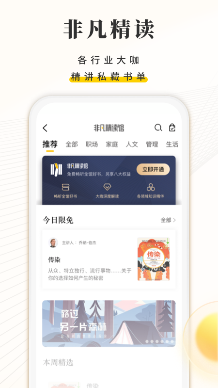 内容丰富多样:每年精选50本经典书籍,相当于每周一本的阅读节奏,通过图文、音频、视频等多媒体形式全方位演绎书籍精华,让阅读变得轻松有趣,彻底告别传统阅读的枯燥与压力。
