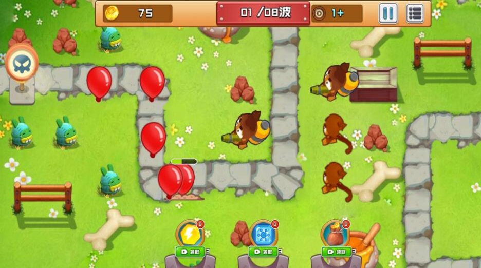 塔防之战略收割是一款充满策略与欢乐的塔防游戏,故事发生在一片原本祥和的森林中。某天,天空中突然飘来大量神秘气球,它们看似无害却暗藏危机,会对玩家的家园造成严重破坏。作为守护者,玩家需要指挥一群可爱的猴子战士,在气球的必经之路上建立防线。通过合理摆放不同功能的猴子塔,巧妙搭配它们的特殊能力,组建出强大的防御阵型。游戏考验玩家的战略布局能力,只有最精妙的配合才能发挥出意想不到的防御效果,成功守护这片美丽的森林家园。