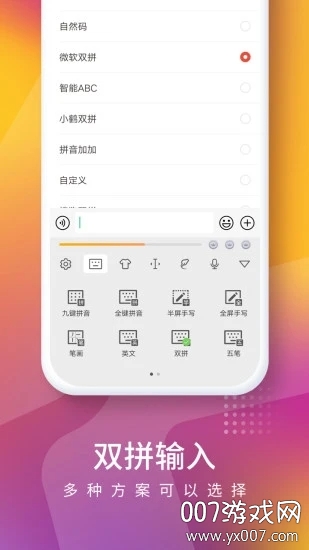 【双拼输入】内置多种双拼方案,并支持自定义码
