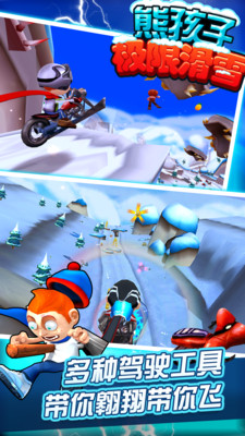 超越现在,跨越未来!你的游戏,从此有戏!《熊孩子极限滑雪》2015首度震撼来袭!多种大型3D仿真天气场景、M种超炫酷人物角色,High到手抖的装备道具,尽在指尖任你体验!生存、竞速两种模式,雪地摩托,喷气背包,飞行伙伴,魔力雪球,诸多特效场景无限充斥你的感官世界!雷电、火流星、暴风雪,超刺激惊险极限逃生,无障碍立体触感,全新的技能系统,瞬间秒杀你的眼球!飞上滑板,抄起摩托,一场与死神赛跑的竞技逃亡之旅,带你用火速燃烧激情!