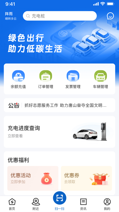 唐山能源App,是一款打造新能源场景的移动端,为唐山市民提供便捷的充电服务,助理市民绿色。市民通过唐山新能源App可以进行扫码充电、开具发票、订单等服务。