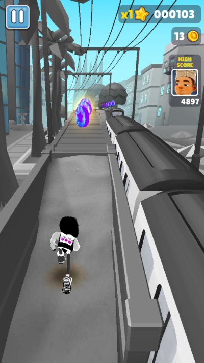道具合理利用,玩家们在游戏中不仅要收集金币,扑面而来的火车也会让你累够呛,在这个过程中你可以使用道具,加速道具能够让你快速前进,使用滑板可以帮助你多出一条生命,点击屏幕两次可以使用道具。