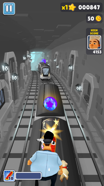 获得飞行背包(Jetpack)后,在道具有效时间内,可在空中飞行,不会遇到障碍物及火车,但仍然可收集游戏币。