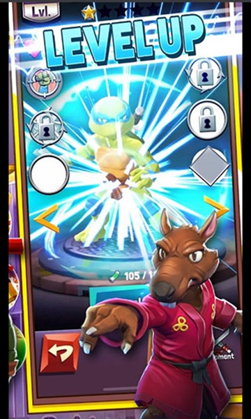 控制乌龟巢穴:玩家可以解锁并升级乌龟巢穴的新房间,这些房间将提供额外的资源和功能,帮助玩家更好地管理自己的忍者战队。