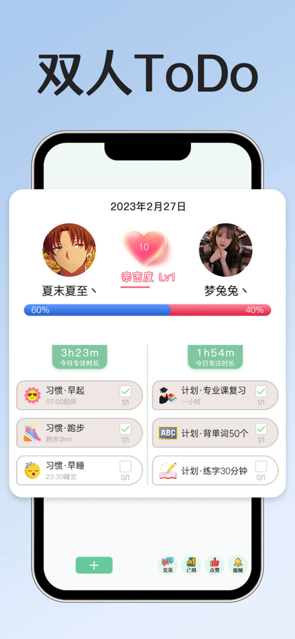 独行快,众行远。在这里,你可以找到志同道合的伙伴——无论是晨跑搭档、学习同伴还是阅读知己。遇见优秀的同路人,在线上自习室共同进步。与伙伴互相监督,制定专属计划,许下不轻言放弃的承诺。在彼此的鼓励和支持中,见证共同的成长与蜕变。